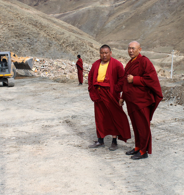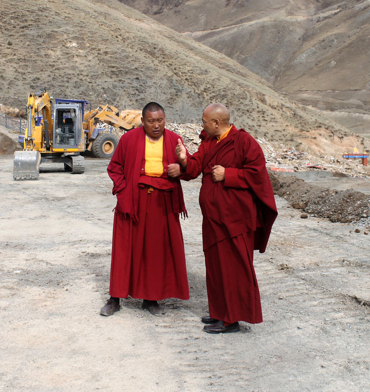 尊贵 洛卓尼玛仁波切关切地到那洛六法闭关中心重建现场巡视