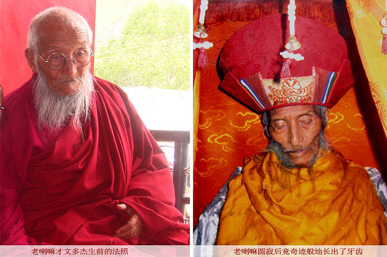 晚年時,喇嘛才文多傑壹直在閉關中度過。期間,他念誦數億觀音心咒(嗡瑪尼貝美吽)。 公元2009年1月吉日,於青海禪古寺祖寺圓寂。當他圓寂的時候,雙腿金剛跏趺坐長達兩個星期,天空中出現了彩虹等眾多瑞相,更加不可思議的是老修行者才文多傑的牙齒奇跡般的長出來了,這更顯其修行證悟的境界。當地的村民及得知消息的人都去拜見法體,並且在法體前發願持誦各種咒語,有的發願持誦壹萬,有的十萬,百萬,千萬,甚至持誦壹億的人都有,他們在法體前甚深的發願得到他老人家加持,並乘願再來度化眾生。
